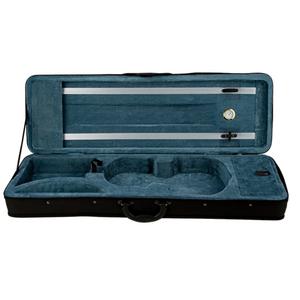8. lightweight shaped violin case, fitted interior with accessory pocket and two bow holders, carrying straps, half lid music pocket