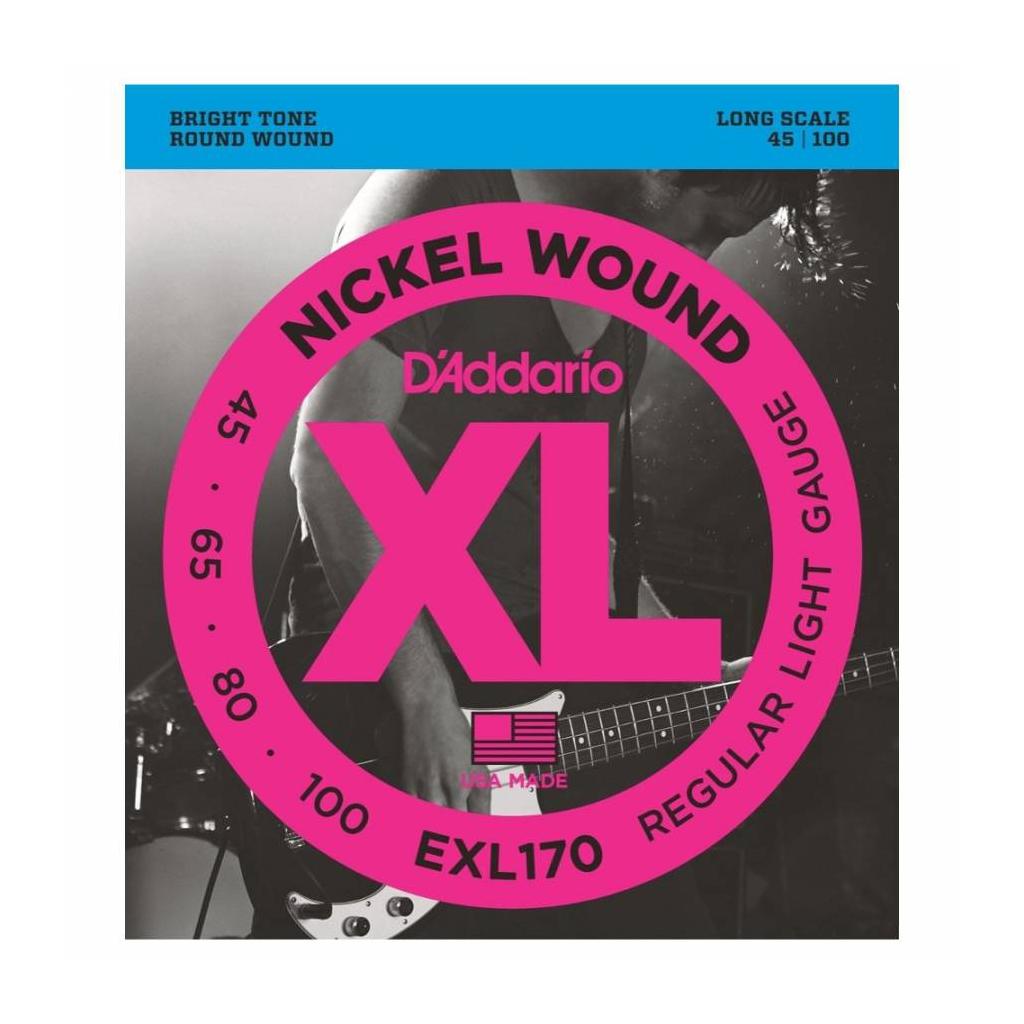 EXL170, D'Addario's best-selling bass set and the standard for most electric basses, offers the ideal combination of bright, booming tone and comfortable feel. The most versatile and universally appealing set for all playing styles. Fits long scale basses with a string scale length of up to 36 1/4 inches.