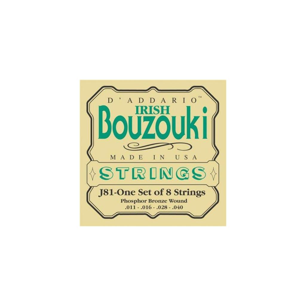 D'Addario's J81 strings are designed for use with Irish bouzoukis of various scales. The unwound strings are made from plain steel and the wound strings are phosphor bronze, acclaimed worldwide for its great, long-lasting tone.