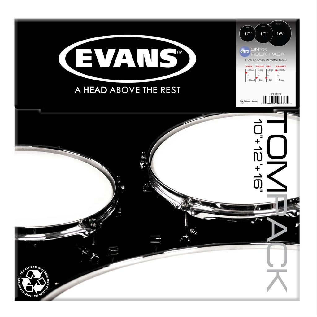 Evans ™ Onyx ™ serisi davul canlı kesim yaparken gelişmiş dayanıklılık sunacak 7.5mil filmin iki katmanlar bulunmaktadır. Bir Frost kaplama Onyx bir mat siyah görünümdür.