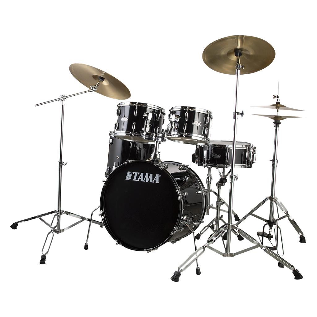 TAMA SG50H6C-BK - Stagestar Black 5 Parça (20B/10T/12T/14F/14S) Aksamlı & Zilli Akustik Davul Seti