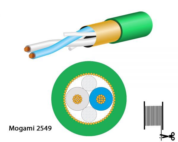 Mogami 2549, herhangi bir kayıt uygulamasında en yüksek kalitede ses üretimini sağlamak için ünlü Neglax OFC'miz kullanılarak tasarlanmıştır. #22AWG iletkenlere ve son derece düşük kapasitansa sahiptir. %100 kapsama hizmetli kalkan ve bükümlü çift yapı, elektromanyetik parazitin neden olduğu gürültüyü önlemede mükemmeldir. Bu kablo, genişletilmiş yüksek frekansların önemli olduğu veya uzun kablo geçişlerinin gerekli olabileceği durumlarda önerilir.
