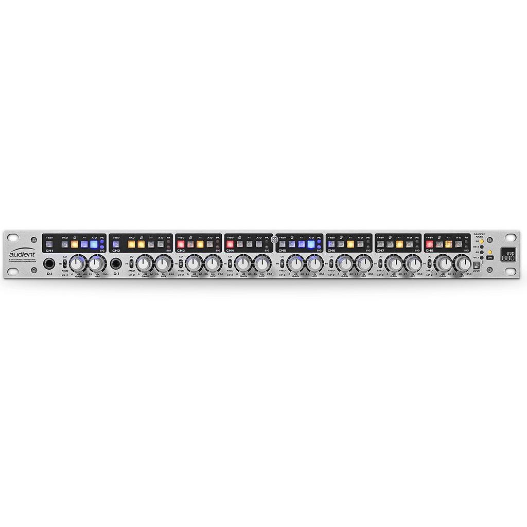 ASP880, çalışmalarınızı dünya standardında kayıtlara dönüştürecek, kurulumunuza ekleyeceğiniz mükemmel bir seçim olan; 8 kanallı bir mikrofon preampı ve ADC’sidir. Üzerinde 8 adet, Audient’in yenilenmiş konsol mikrofon preamplarını, birinci sınıfı dönüştürücü teknolojisini ve değişken empedans ve değişken high pass filtre gibi çok yönlü özelliği bulundurmaktadır. Üstelik bütün hepsi 1U rack içerisinde!