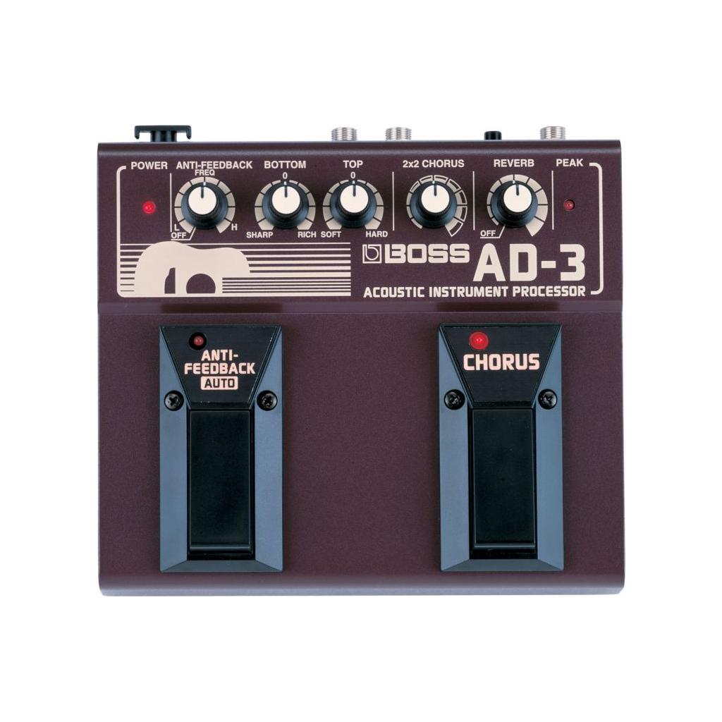 Sahne ve stüdyo kullanımı için geliştirilen AD-3 elektro akustik gitarlara, özellikle elektro akustik gitarlar için uygun hale getirilmiş ton biçimlendirme kontrolleri, yüksek kaliteli reverb ve chorus, buna ilaveten yerleşik bir Feedback giderici özellikleri sayesinde daha sıcak, zengin bir ses verir.Gayet basit bir şekilde, bu yekpare pedal bir akustik müzisyeninin en iyi arkadaşıdır.
