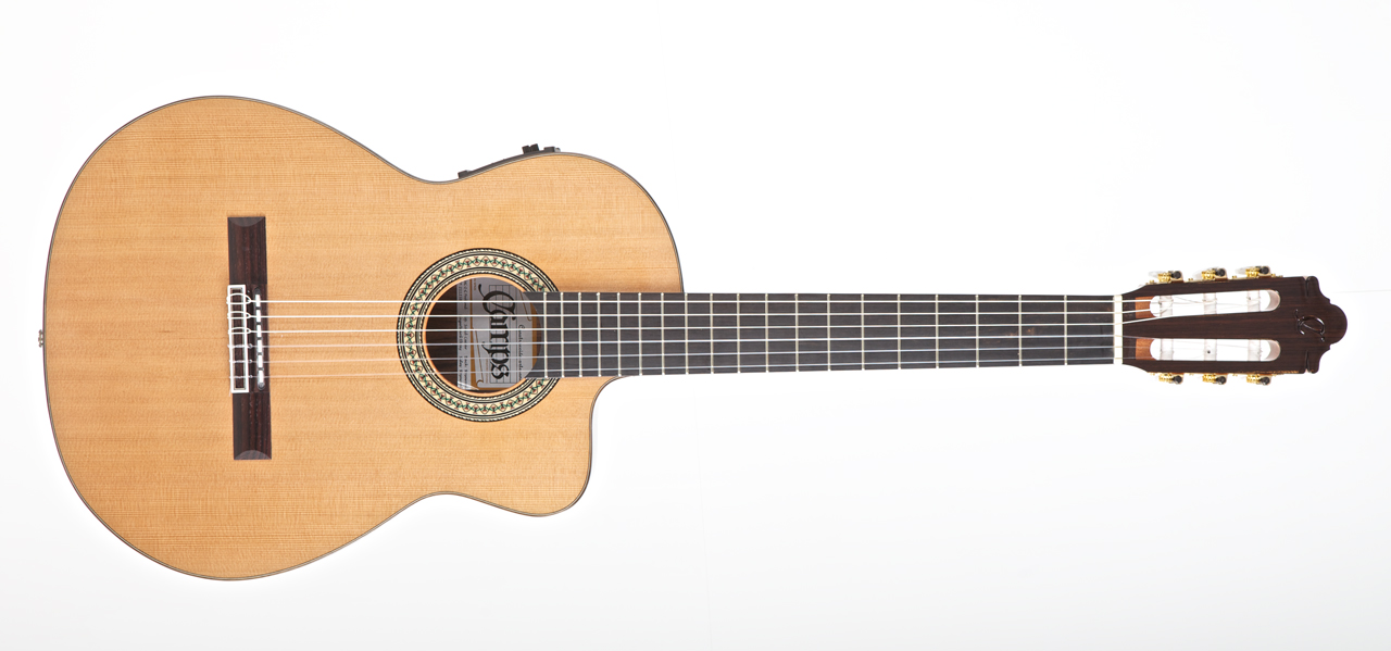This guitar is addressed to restless players. It is designed to provide a wonderful playability. It is achieved because the action of the strings is adjusted in order to facilitate the action, the neck is made in such a way that the left hand slides softly and the narrow case. Moreover, it contains an adjustable truss rod inside the neck, which has a double effect. On one hand bending problems are avoided, and on the other hand it is possible to build narrower necks, getting thus the desirable ergonomics - so that the left hand plays effortlessly. An ease playability at treble fret, thanks to cut-away aesthetics.