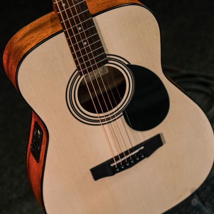 Bright yet natural with a strong and warm midrange, the beloved mahogany wood has been a standard for back and sides on premium acoustics for many decades.