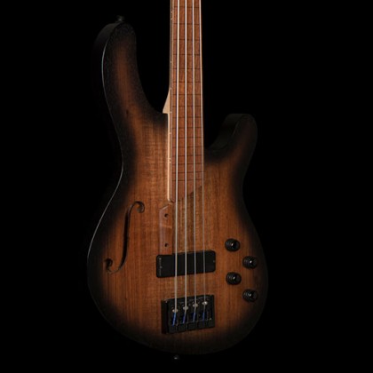 The Blackwood top on chambered Mahogany body with the F-hole exudes a classy look while delivering a deep, organic and punchy low-end sound.