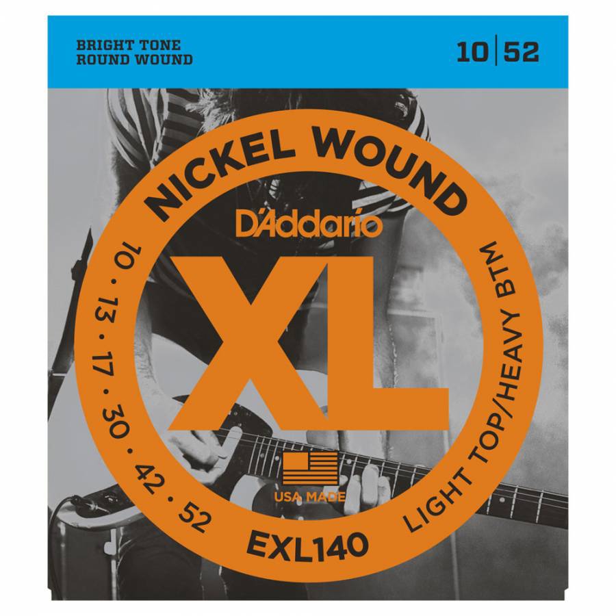 EXL140, D'Addario'nın en popüler melez setlerinden biridir; EXL110'dan (.010) yüksek dizeleri daha düşük düşük dizgilerle (.052) birleştirir. Bu kombinasyon, ağır yazım için güçlü alt sınır ve eğilme için esnek düz çelik dizgiler sunar. Aşağıya veya damla ayarına göre optimize edilmiştir!