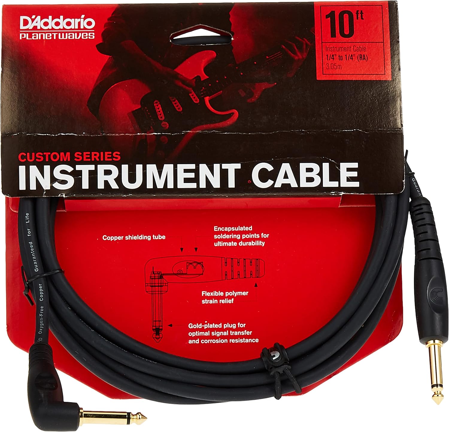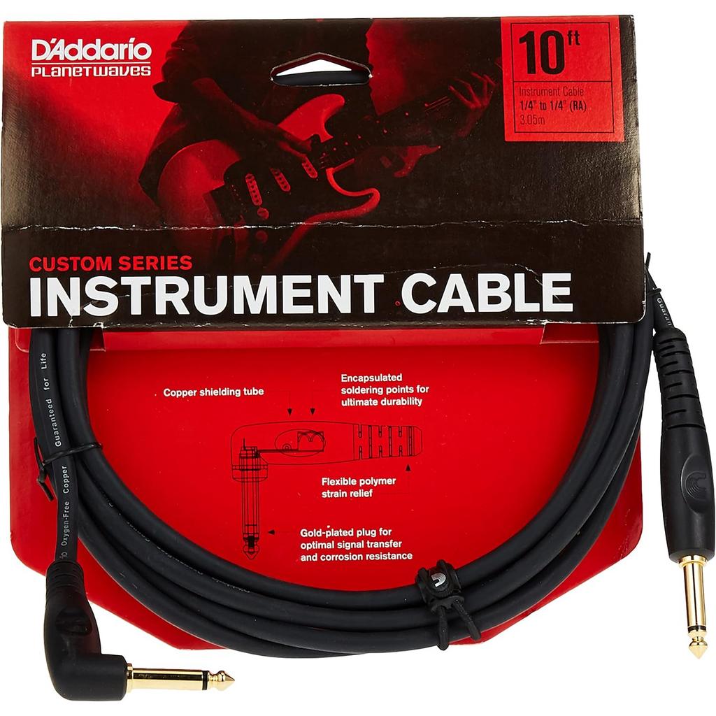 D'Addario Custom Series Cables utilize ultra-pure, Twisted pair, oxygen-free copper conductors for low capacitance and pure tone. Encapsulated and impenetrable soldering points with double-molded strain relief provide maximum durability and worry-free reliability. Two layers of shielding provide 100% coverage for superior noise rejection noise rejection and minimal handling noise, making this a superior, high-performance cable. Also available in stereo (TRS) at 10’ and 25’ lengths.