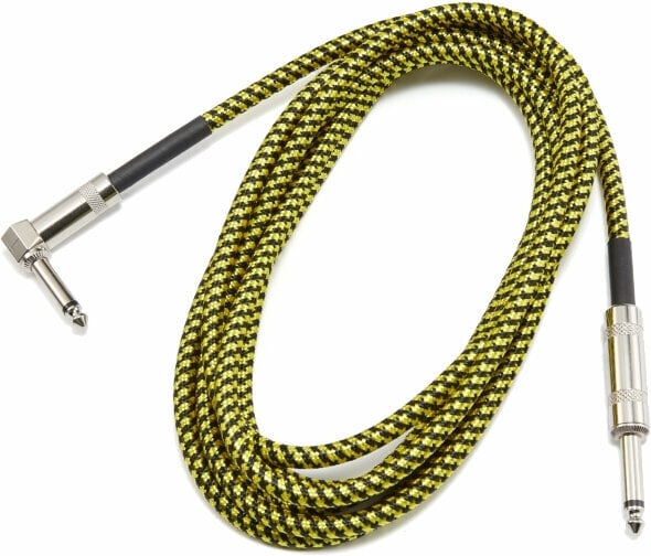 This 3 m connecting cable connects two audio devices using 6.3 mm Jack connectors. One connector is straight and the other is at an angle of 90 degrees, which makes it easy to connect in different spaces.