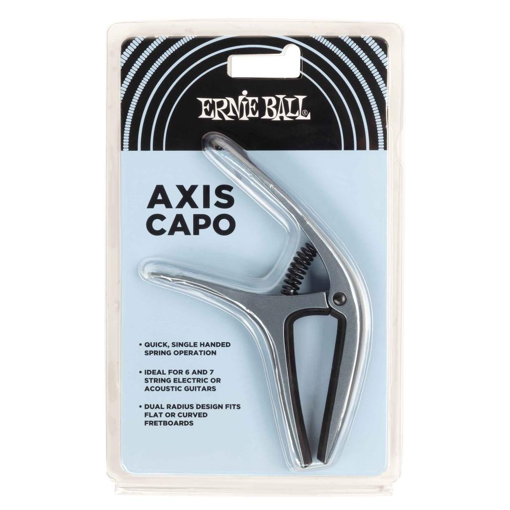 The Ernie Ball A xis Capo’s ergonomic features allow for fast and accurate single-handed key changes. Compatible with most electric and acoustic guitars, the A xis capo offers eight color finishes to match, with a dual-radius design that fits both flat and curved fretboards. Shift capo position single-handedly, and rely on buzz-free clamping pressure that lets your songs sing out in every key. Take the Axi s Capo on the road and trust precision-molded rubber pads to protect your guitar finish. On the stage or in your writing space, it has to be the Axi s Capo.