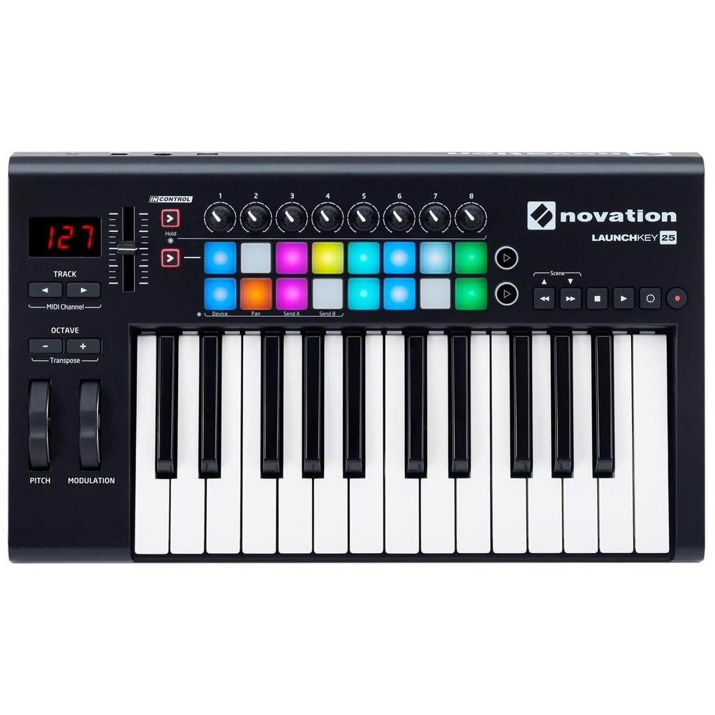 25, 49, 61 tuşlu keyboard'un 50 adet kontrol düğmesi mevcut ve Ableton'ı kontrol edebileceğiniz 16 adet dokunduğunuzda parmağınızın hızına duyarlı, çok renkli (RGB) padleri vardır. Launchkey ile DAW mikserinizi ya da enstrümanınızı kontrol edebilirsiniz.