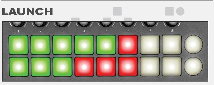 16 adet arkadan aydınlatmalı, çok renkli, hıza duyarlı padler ile bilgisayaraınıza dokunmadan drum oynatabilir, ya da loopları çalıştırabilirsiniz. Kullandığınız yazılım ne olursa olsun 16 pad yardımı ile Ableton Live'da beat'leri drum'ları kontrol edebilirsiniz. Üst sırada yer alan 8 adet pad klipleri oynatırken alt sıradaki 8 adet pad ile klipleri durdurabilirsiniz.