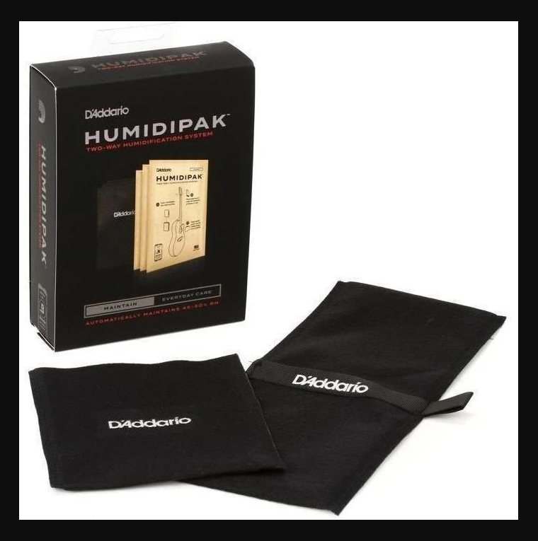 D'Addario brings you Boveda's patented technology as part of our instrument care line. The Two-Way Humidification System (formerly Humidipak) is the only maintenance free, two-way humidity control system for guitar. It automatically maintains the optimal 45-50% relative humidity level within your instrument case, eliminating the guesswork and potential mess related to refilling a humidifier. Unlike refillable humidifiers, this system provides true “two-way” purified humidity control by adding and removing moisture on demand. No more manual adjustments based on seasonal changes, geographic locations, temperature, or other factors. The Two-Way Humidification System comes with 3 Humidipaks and a soft mesh pouch that will not harm your instrument's finish. These packets last between 2 and 6 months and should always be kept in a sealed environment like a hard-shell case. Once the packets become firm, discard and replace using the 3 refills that come in the D'Addario Two-Way Humidification Replacement Pack (PW-HPRP-03). This all new, reformulated, patented two-way humidification system maintains 45-50% relative humidity which eliminates all maintenance and guesswork. This system is recommended by taylor guitars and others for maintaining the stability and playability of your instrument.