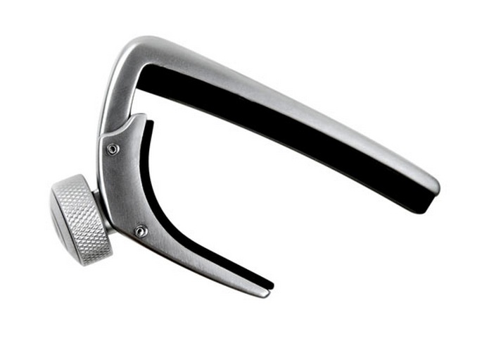 The D'Addario Pro Capo is made from aircraft-grade aluminum for use on acoustic and electric 6- and 12-string guitars. The Pro Capo assures buzz-free, in tune performance at any fret. The patented micrometer adjustment mechanism allows the player to dial in the exact tension needed for clear ringing notes without excessive force in any position on the neck. This greatly reduces the need to retune your guitar during and after capo use. The sleek construction can withstand the toughest playing or touring schedule while adding very little additional weight or obstruction to the instrument.