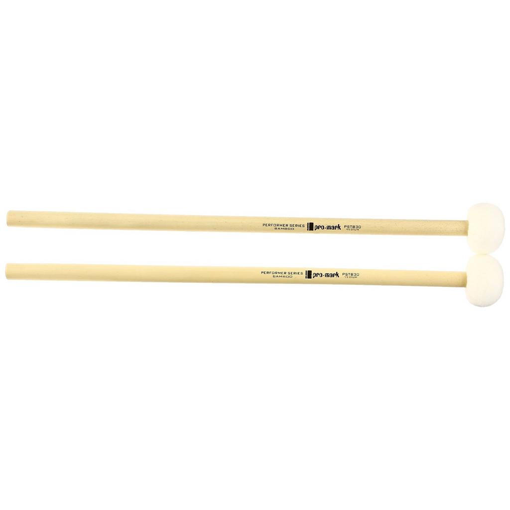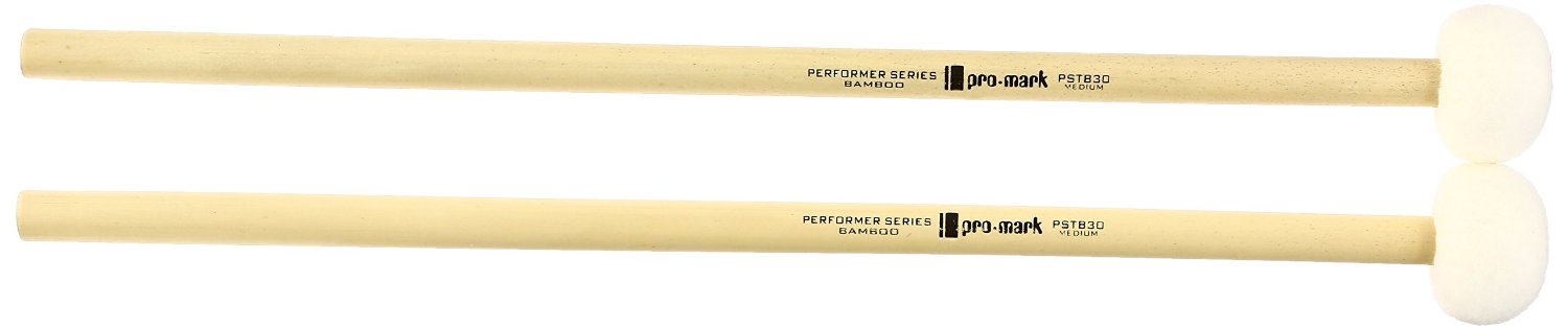 ProMark PSTB30 maple timpani mallets feature a German felt parachute-style covering for a warm, articulate sound on all sides of the mallet. The PSTB30 provides medium articulation and balanced tone. The bamboo handles are extra light-weight and push the balanced towards the head of the mallet for increased momentum. These Performer Series bamboo timpani mallets are professional level mallets with excellent tonal response. The high quality bamboo handles provide a truly luxurious feel. These are a "must have" for the serious percussionist. For over 50 years, ProMark has been one of the world's leading manufacturers of drumsticks, mallets, and percussion accessories. Owned and operated by D'Addario & Co., the Houston, Texas based ProMark produces products used globally by the greatest drummers and percussionists in the world, including Neal Peart, Phil Collins, Simon Phillips, Ringo Starr, and many more. ProMark - Make Your Mark.