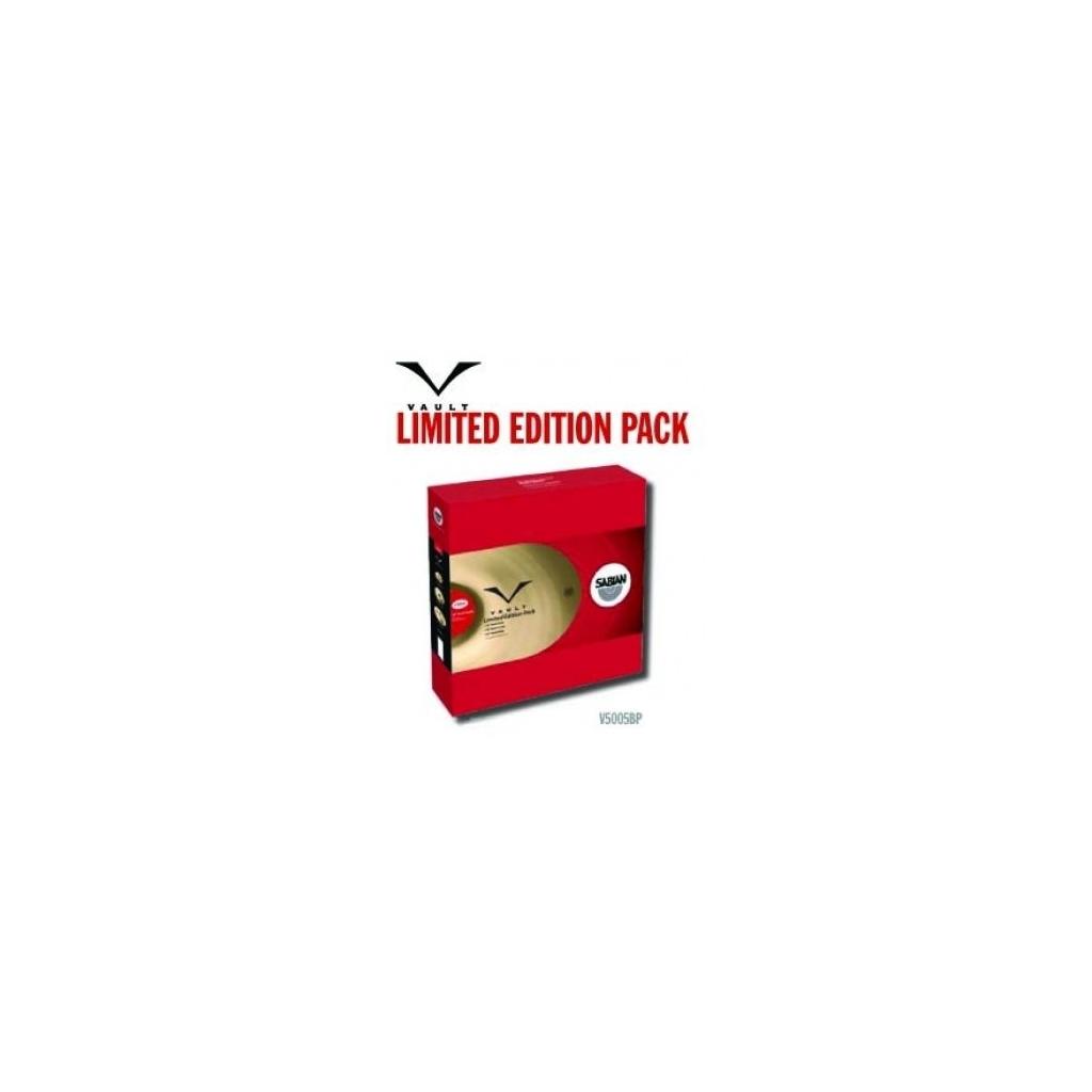 The Sabian Vault V5005BP cymbal set includes 14 Vault hihats, 18 Vault Crash, 20 Vault Ride and a FREE 20 Vault Crash